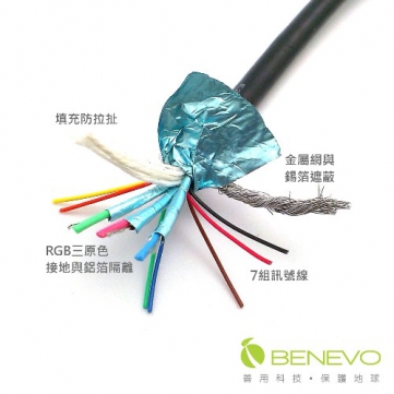 ◆ 線材具金屬編織與錫箔遮蔽設計,抗電磁干擾,支援所有VGA格式