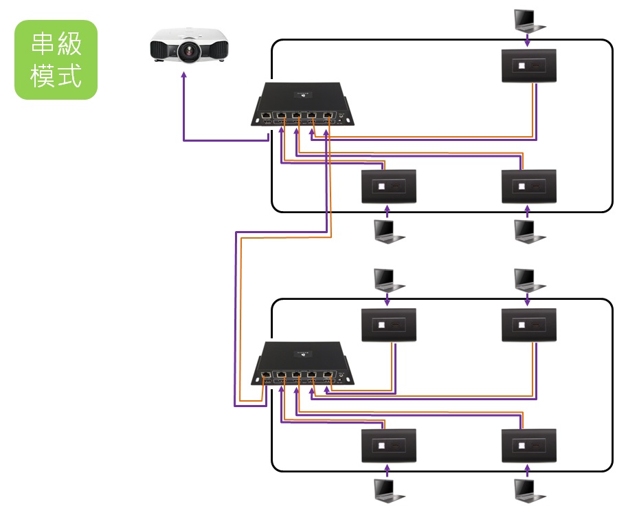 ◆ 輸出距離較遠時,可選購網線型HDMI延伸器連接投影機,最遠約40公尺。