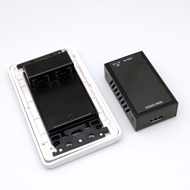 BENEVO這一款面板型 HDMI影音訊號延伸器,由一個面板型傳送端與接收端組成,兩端之間以單一條 CAT6纜線連接,即可將 HDMI 訊號做延長,支援解析度1080p,最遠可達50公尺。傳送器提供2埠RJ45系統連接埠,可加購一個接收器達到兩個同步顯示。