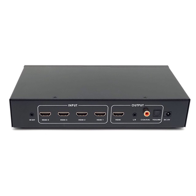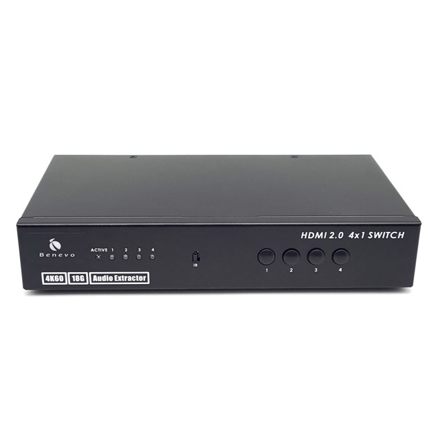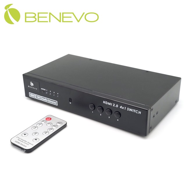 BENEVO推出的這一款 HDMI影音訊號切換器,可讓您輕鬆切換 4 組不同的 HDMI 數位影音,使用面板按鍵或遙控器切換,支援1組類比音源(3.5mm)及2組數位音源(Coaxial/Toslink)輸出,支援輸出解析度達 4K2K@60Hz。