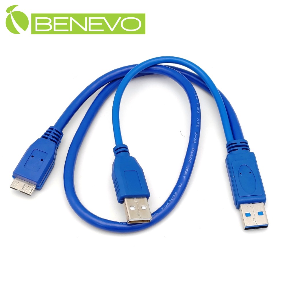 ◆ 連接頭一端為兩個 USB3.0 Type A 公頭(一個用來增強/額外供電),一端 為USB3.0 Type Micro B 公頭