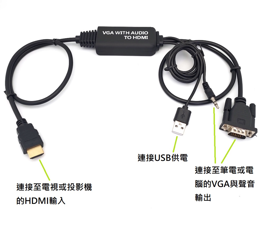 ◆ 將VGA輸出與音效轉換為HDMI影音