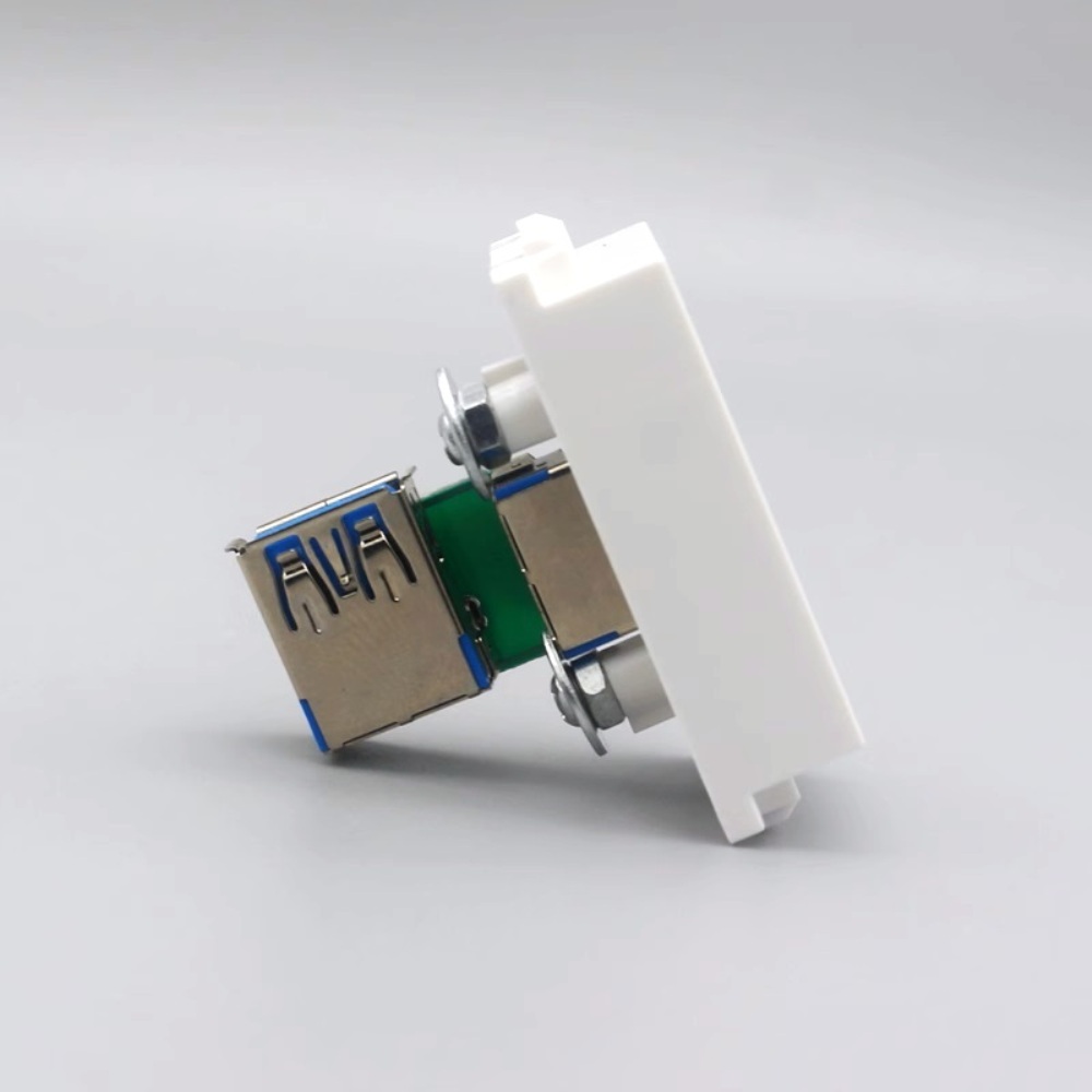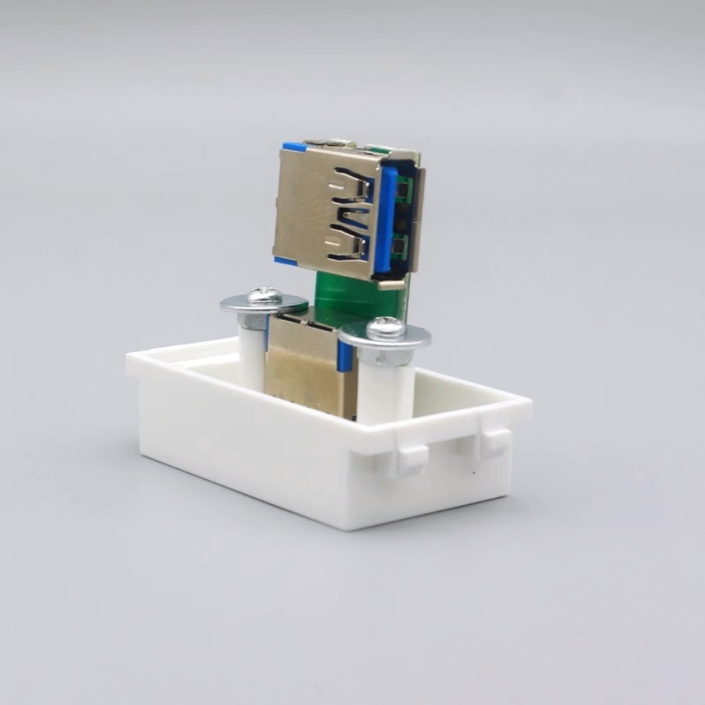 ◆ 可用於壁插或是桌面設置資訊插座環境 ◆ 本款提供1個USB3.0側彎插座 ◆ 面板為白色,銀色邊框,有質感 ◆ 後側為母頭設計,可直接連接連接線 ◆ 免焊接與組合式設計 ◆ 包裝具備基本安裝用螺絲 ◆ 面板後側請留足夠深度以便設置連接線 ◆ 外框尺寸:寬約70mm,高約120mm ◆ 安裝螺絲孔距84mm,可搭配120/118型配線盒