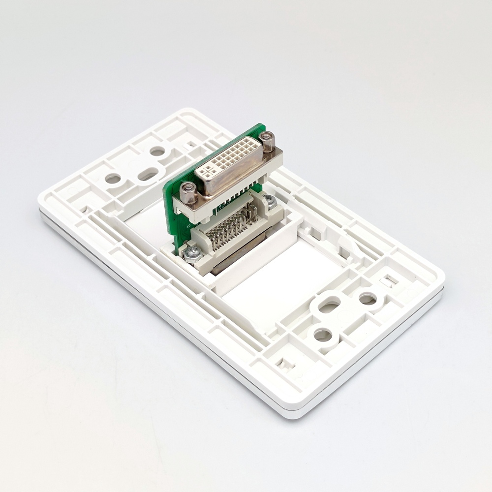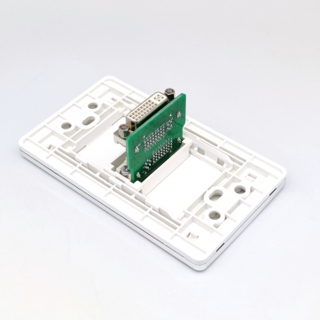 ◆ 可用於壁插或是桌面設置資訊插座環境 ◆ 本款提供1個DVI-D插座(Single Link) ◆ 面板為白色,銀色邊框,有質感 ◆ 後側為母頭設計,可直接連接連接線 ◆ 免焊接與組合式設計 ◆ 包裝具備基本安裝用螺絲 ◆ 面板後側請留足夠深度以便設置連接線 ◆ 外框尺寸:寬約70mm,高約120mm ◆ 安裝螺絲孔距84mm,可搭配120/118型配線盒
