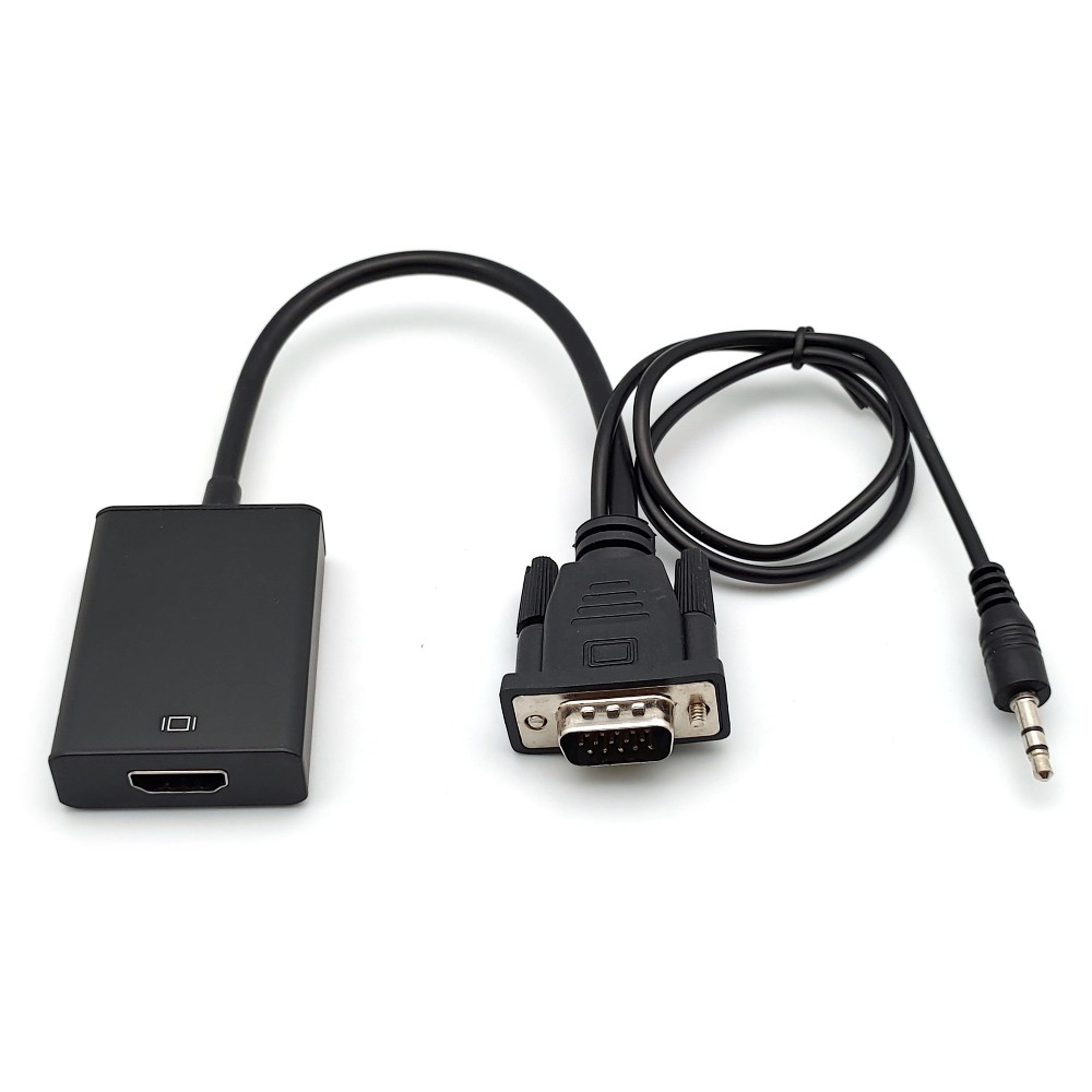 這一款帶線型VGA影音轉HDMI訊號轉換器可以將類比VGA視訊與音效轉換為高畫質數位HDMI訊號。可以用來連接具有VGA輸出的筆電、桌上型電腦、多媒體電腦、數位遊戲機、家庭劇院設備,並將影像輸出到具有HDMI的電腦螢幕、電視或投影機。本視訊轉換器僅針對格式做轉換,不會對輸入訊號進行縮小、放大處理(點對點輸出),支援解析度最高為1080p(1920x1080),輸入與輸出解析度一致,支援所有標準VGA解析度範圍。